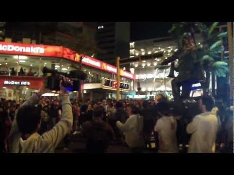 Las calles de Miraflores, uno de los distritos más turísticos de Lima, fueron abarrotadas por miles de peatones hasta casi el amanecer de hoy por las exposiciones de arte, instalaciones, conciertos y hasta una peculiar procesión, que formaban parte de la Noche En Blanco.